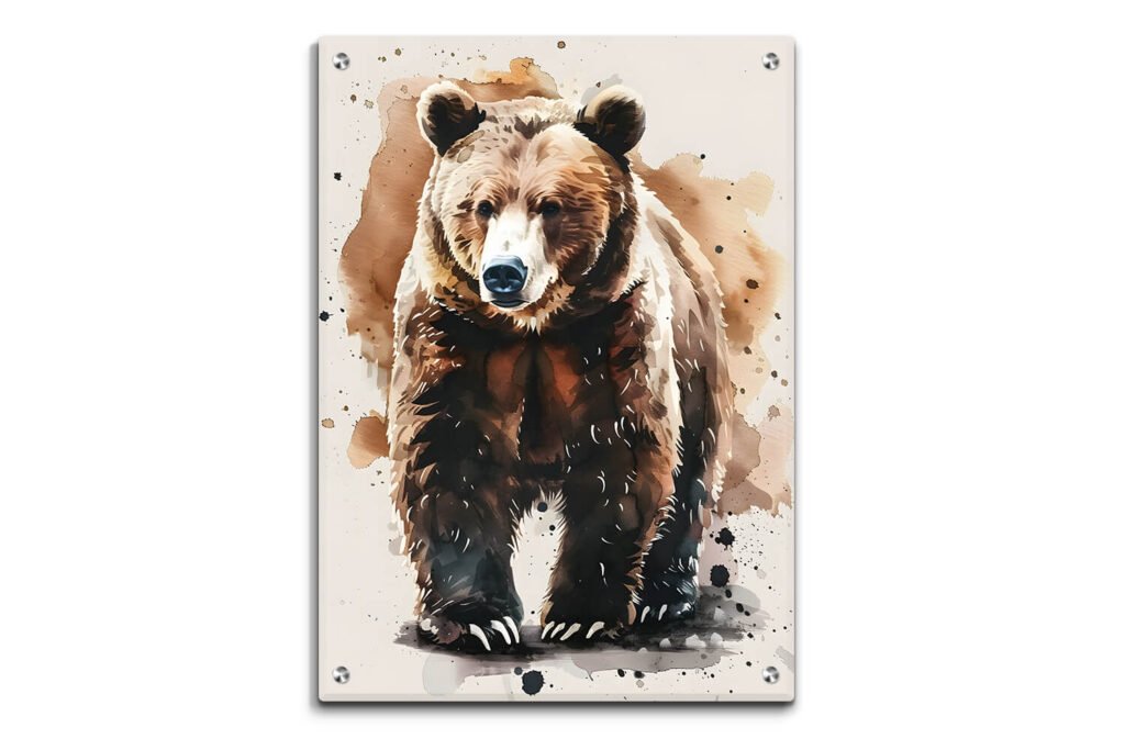 תמונת זכוכית – דוב חום בציור מים S7031