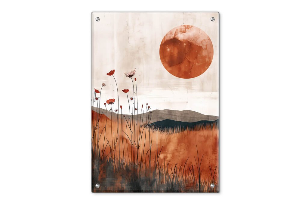 תמונת זכוכית – נוף טבעי עם פרחים S3073