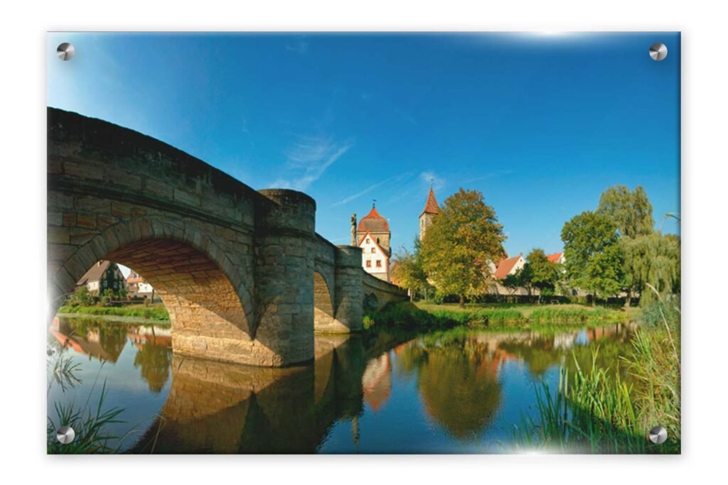 תמונת זכוכית גשר עתיק ונהר