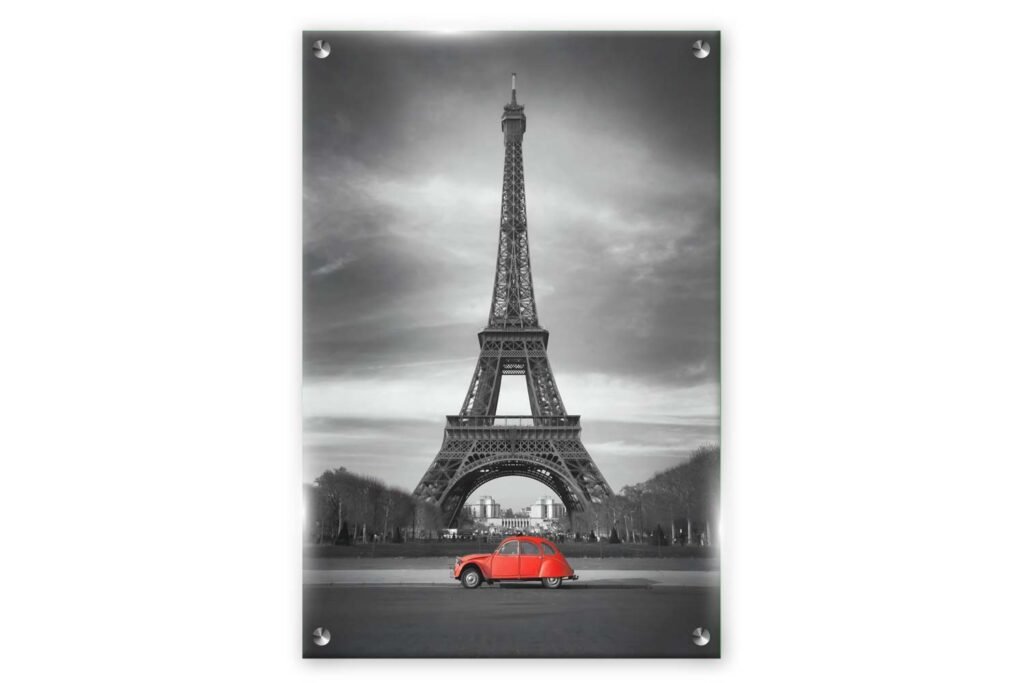תמונת זכוכית מגדל אייפל עם רכב אדום