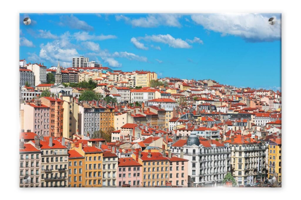 תמונת זכוכית נוף הרים מושלגים עם כפר