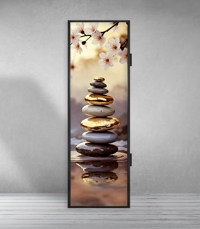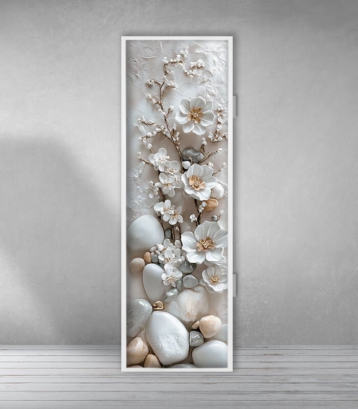 כיסוי ארון חשמל פרחי דובדבן לבנים וחלוקי נחל E1002