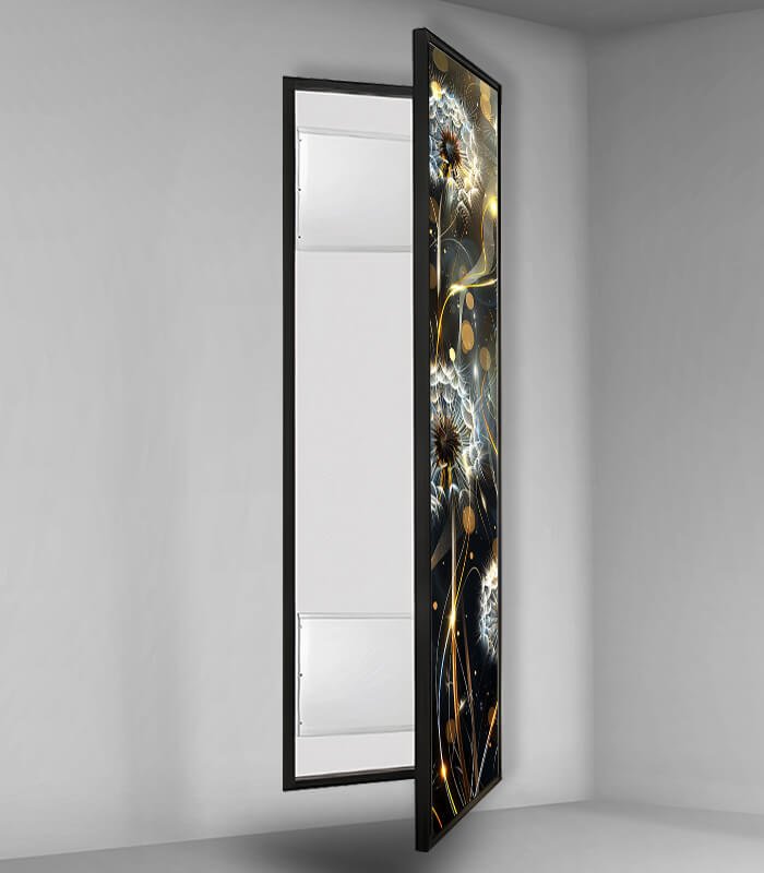 כיסוי לארון חשמל מזכוכית מחוסמת עם הדפס אומנותי אישי, מסגרת אלומיניום וגימור יוקרתי – משדרג את העיצוב והופך כל קיר לחגיגה ויזואלית.
