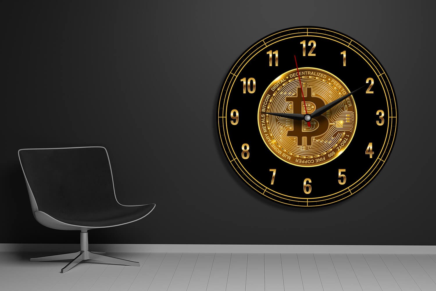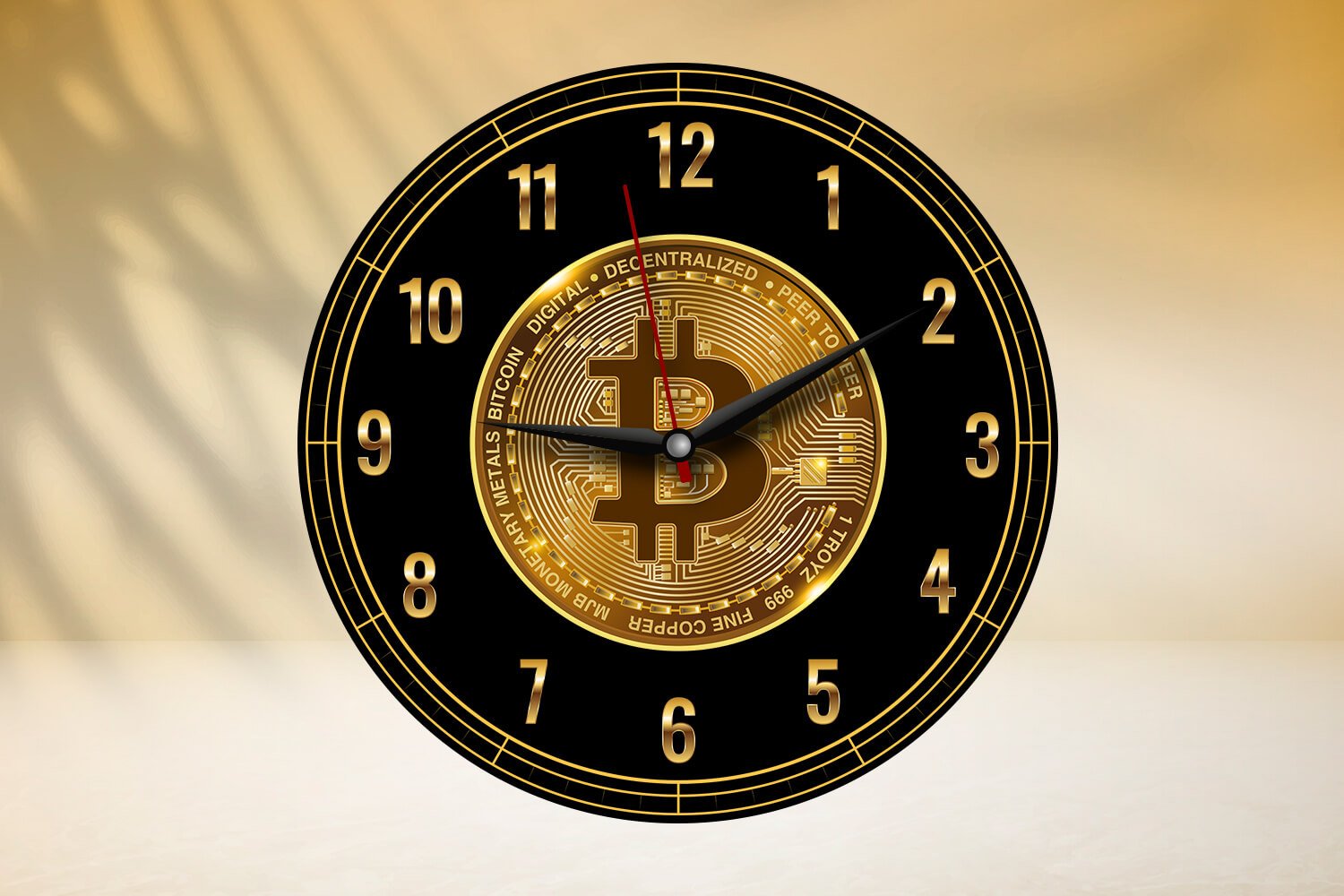שעון זכוכית אקרילית ביטקוין מעוגל שחור זהב –CW1004