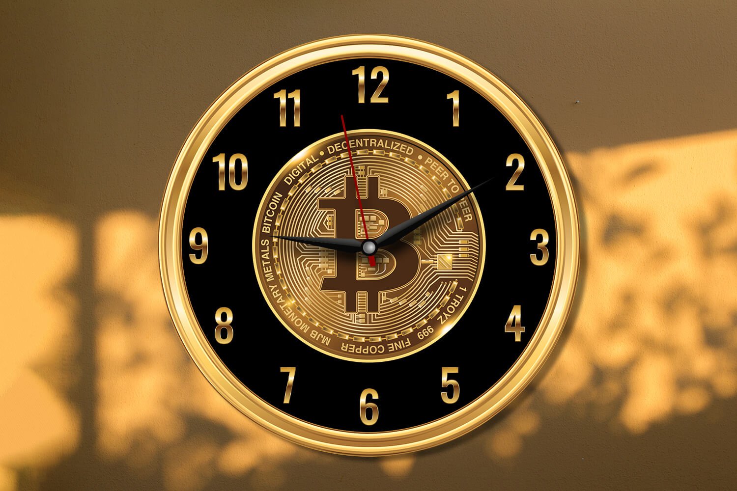 שעון זכוכית אקרילית ביטקוין רקע שחור זהב–CW1006