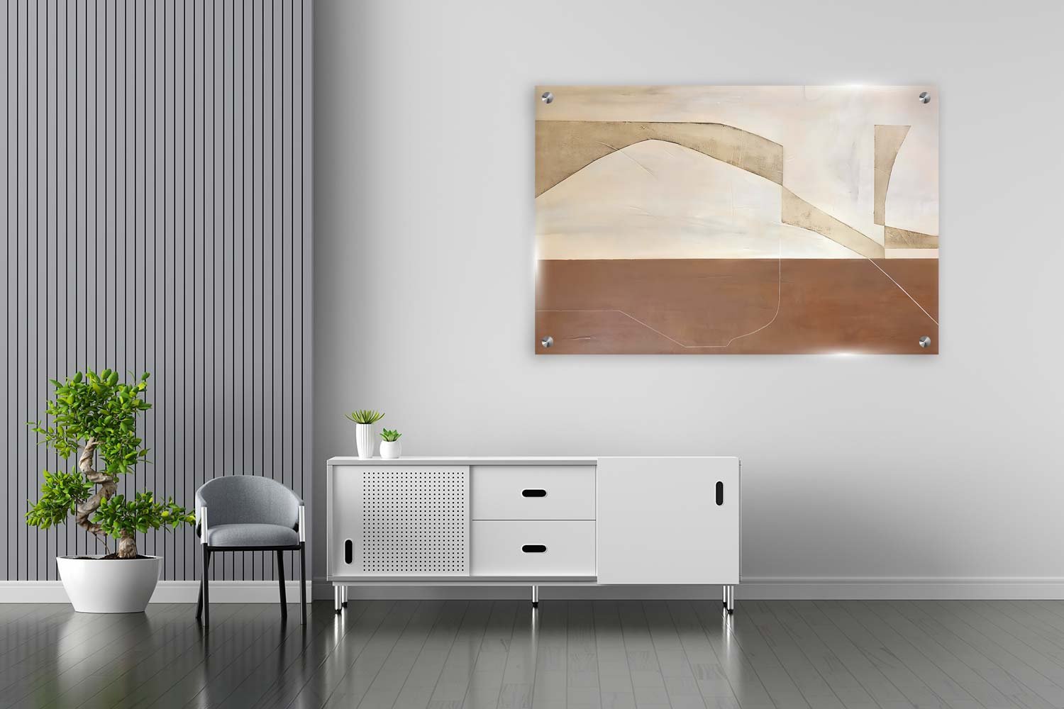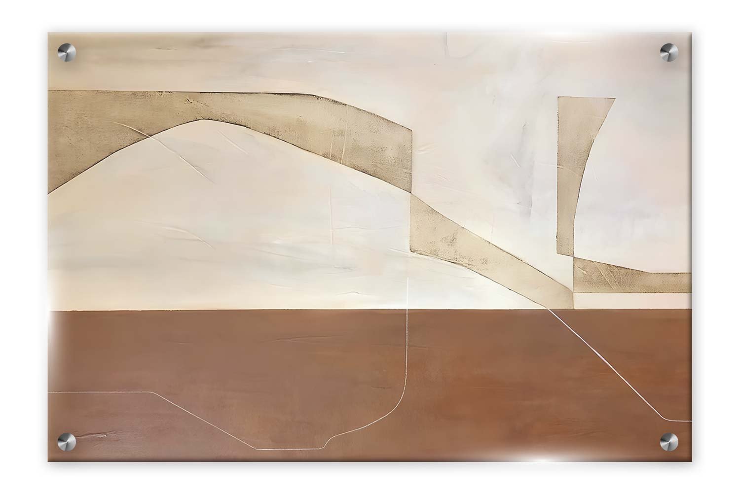 תמונת זכוכית אבסטרקטית מינימליסטית בגווני חום ולבן S1006