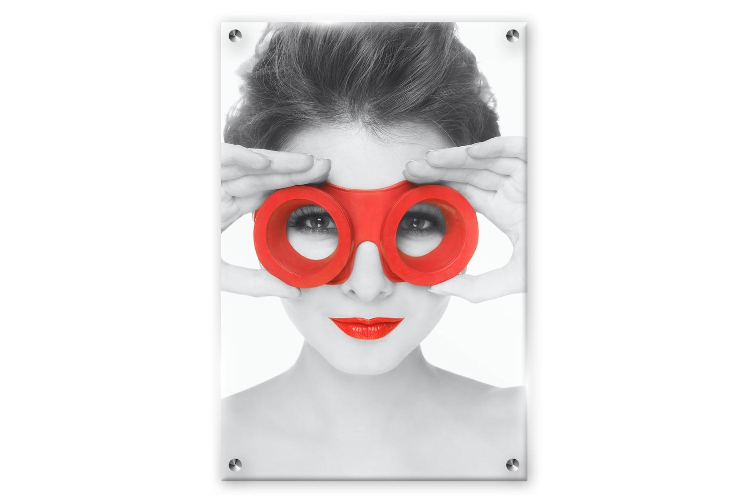 תמונת זכוכית – אישה עם משקפיים אדומים S3021