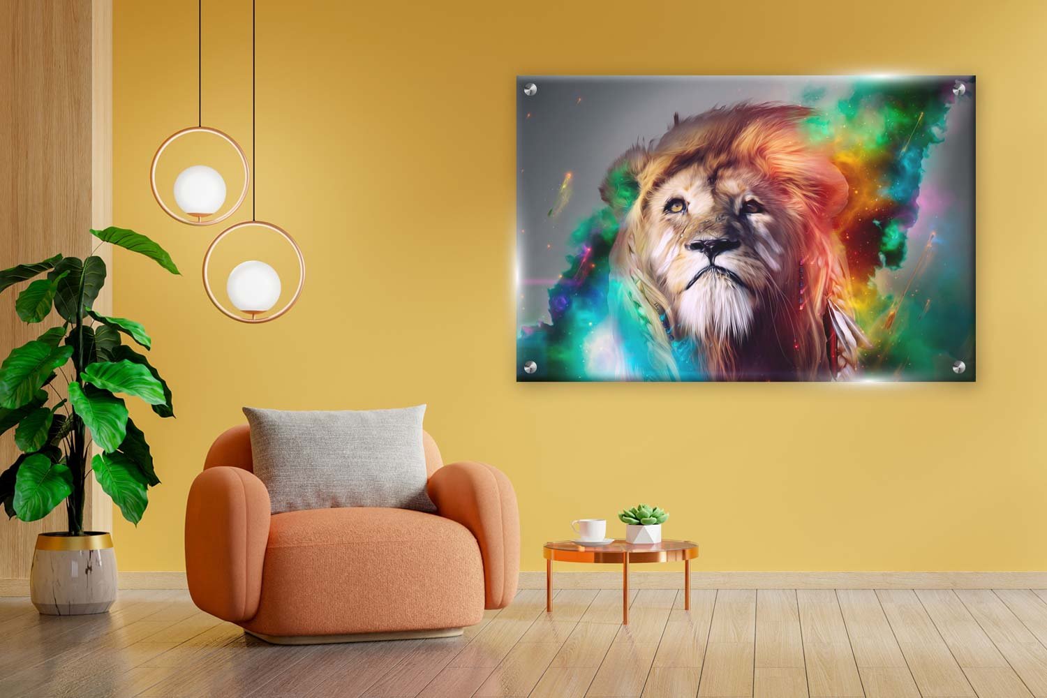 תמונת זכוכית – אריה צבעוני אבסטרקט S7001