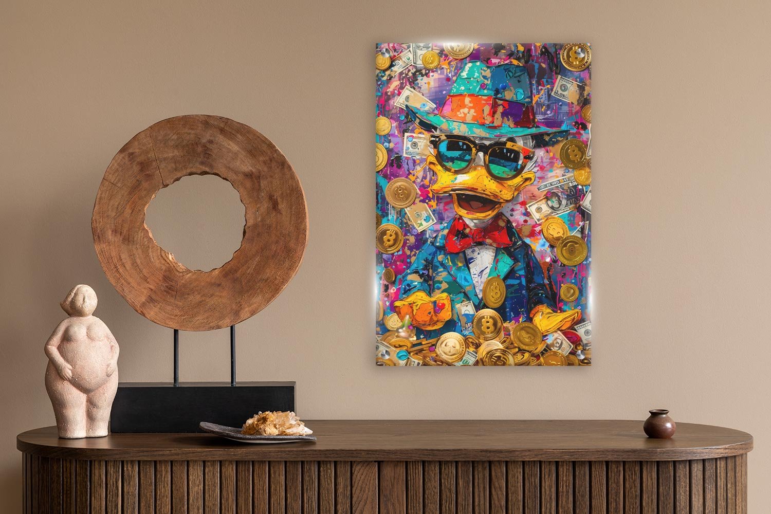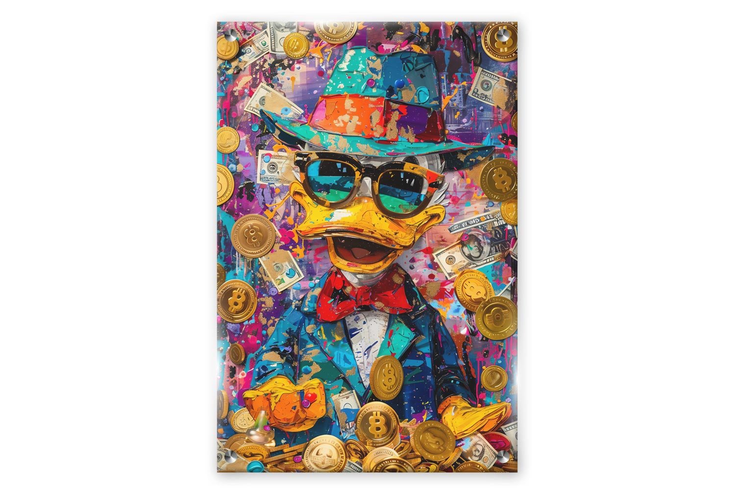 התמונה מציגה דמות מחויכת עם כובע ושמשות, בלבוש יוקרתי, משדרת תחושת שמחה ועושר. הפוסטר מתאים לקישוט חללים שונים בבית או במשרד ומביא את רוח התרבות העכשווית.
