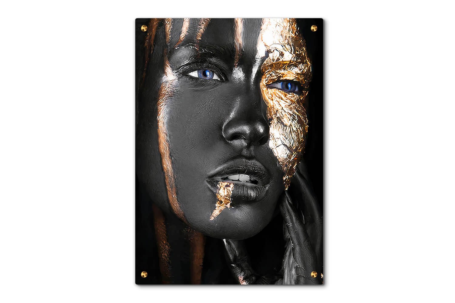 תמונת זכוכית ייחודית המציגה מסכה בעיצוב אומנותי מרהיב, המשלבת פרטים חדים ואסתטיקה ויזואלית גבוהה. התמקדות בפרטים הקטנים של המסכה: חריטות, תווים ודפוסים. צבעים חמים ונועזים המדגישים את האומנותיות של העיצוב. אידיאלית לעיצוב חללים יצירתיים כמו גלריות, סטודיואים, משרדים או חדרים פרטיים.