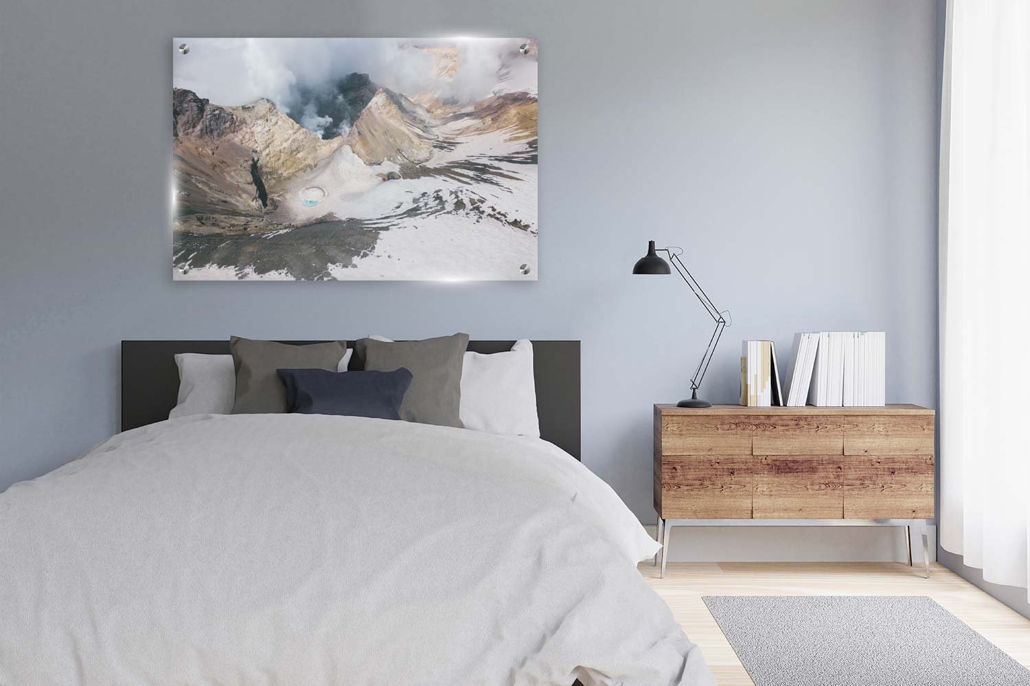תמונת זכוכית נוף הררי עם עננים ועשן