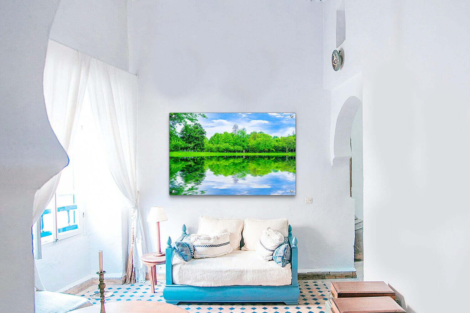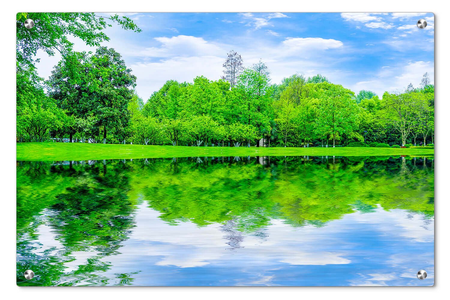 תמונת זכוכית – נוף טבעי עם מים ועצים S3074
