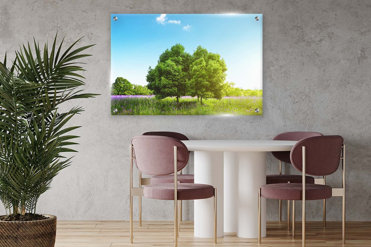 תמונת זכוכית עץ ירוק בשדה פורח!
