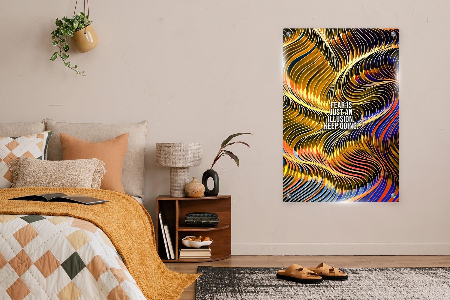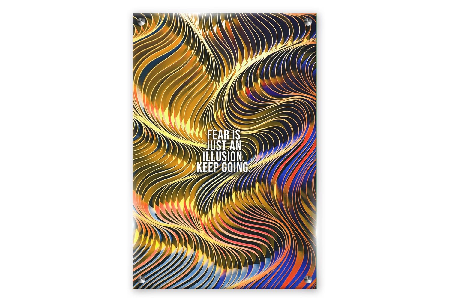 הפוסטר מציג עיצוב גלי עם גוונים של זהב, כחול ואדום. המסר המוטיבציוני במרכז הפוסטר מדגיש את חשיבות ההתקדמות האישית והשגת המטרות. מדובר במוצר אידיאלי לחדרי עבודה, חדרי כושר או כל חלל שבו רוצים להוסיף נגיעה של מוטיבציה.